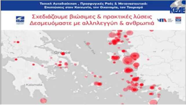 Στο πρόσφατο συνέδριο της ΚΕΔΕ στη Σάμο, με θέμα το προσφυγικό, παρουσιάστηκε χάρτης της Ελλάδας στον οποίο δεν απεικονιζόταν η Μακεδονία, η Θράκη και στο νότιο άκρο της χώρας η Κρήτη.