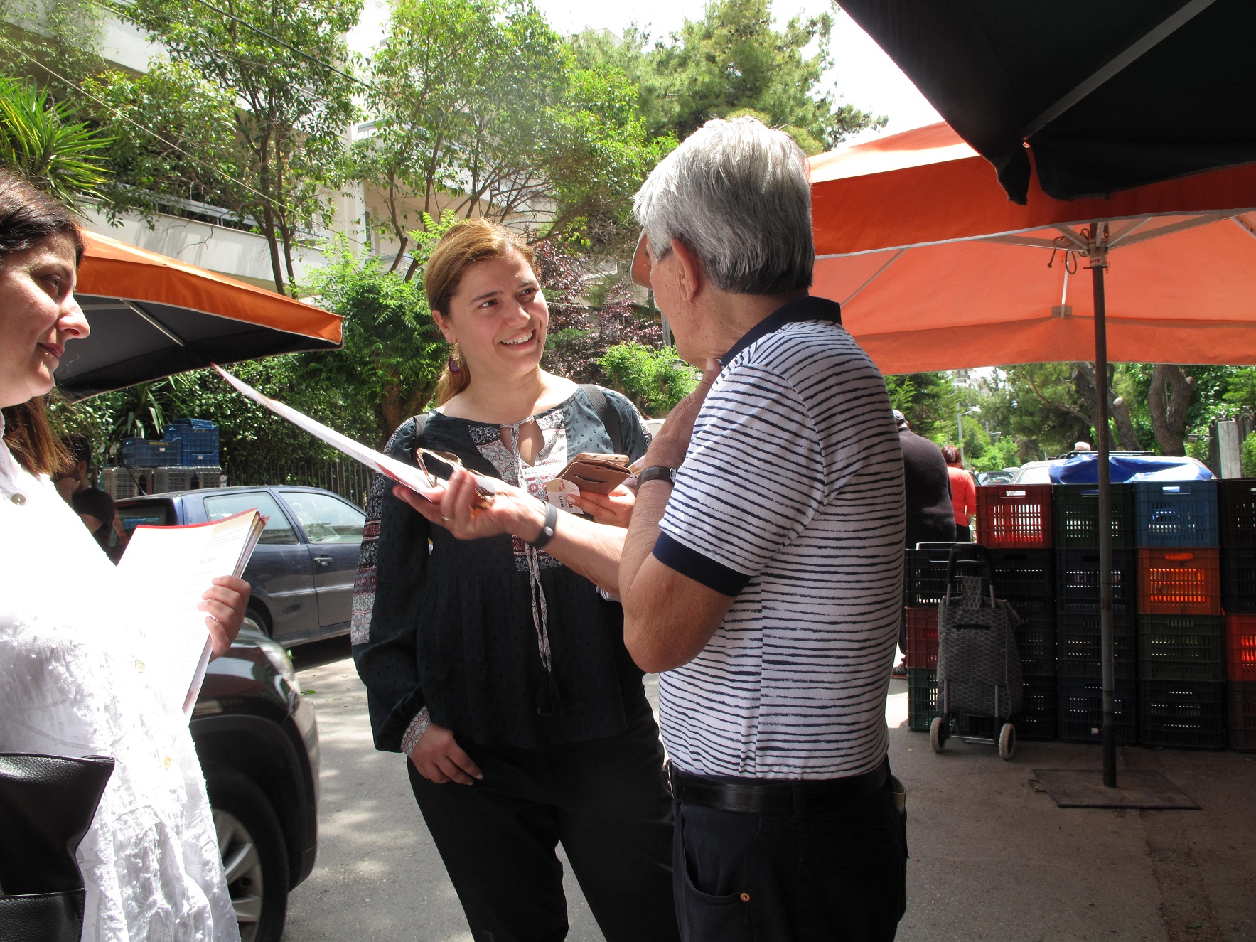 Σε καφενεία και λαϊκές αγορές του Αμαρουσίου βρέθηκε για ακόμη μία φορά το Σάββατο 18|05 η επικεφαλής της παράταξης «Αδέσμευτη Φωνή», Μαίρη Διακολιού, καθώς και πολυάριθμη ομάδα υποψήφιων δημοτικών συμβούλων.