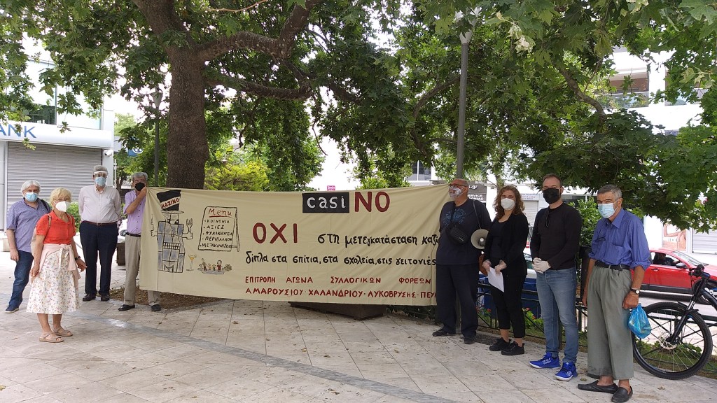 Η παράταξη «Μαρούσι Αδέσμευτη Φωνή» συμμετείχε την Κυριακή 30/06 με εκπροσώπους της στη διανομή ενημερωτικών φυλλαδίων ενάντια στην δεύτερη προσπάθεια μετεγκατάστασης του Καζίνο Πάρνηθας, σε Καζίνο – Mall στην περιοχή Αγίας Φιλοθέης Αμαρουσίου που βρίσκεται σε εξέλιξη. Η δράση μας πραγματοποιήθηκε στο πλαίσιο της συμμετοχής της παράταξής μας στην διαδημοτική, διαπαραταξιακή Επιτροπή Αγώνα που έχει συσταθεί και ενεργεί από το 2019, όταν έπρεπε να οργανωθεί η τοπική κοινωνία για να αντιμετωπίσει την πρώτη προσπάθεια μεταφοράς του Καζίνο Πάρνηθας. Η οποία ανακόπηκε με αμετάκλητη απόφαση του Συμβουλίου της Επικράτειας κατά της εγκατάστασης που κερδίσαμε μαζί, όσες και όσοι αγωνιστήκαμε.