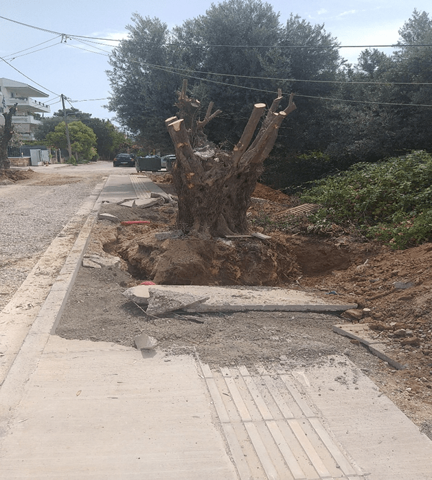 Αν υπήρχε σχεδιασμός πολιτικής, πρώτα θα είχαν μεταφυτευτεί –ΜΕ ΝΟΜΙΜΟ ΤΡΟΠΟ ΚΑΙ ΣΧΕΤΙΚΕΣ ΑΠΟΦΑΣΕΙΣ– οι ελιές, και μετά θα γίνονταν οι κατασκευές των πεζοδρομίων.
