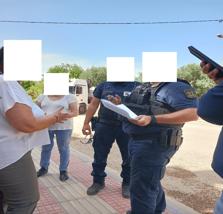 Το αποτέλεσμα ήταν, να εμφανιστεί κάποια στιγμή ο αντιδήμαρχος Τεχνικών Έργων και η Διευθύντρια Τεχνικών Υπηρεσιών με έγγραφο όμως, που αποτελούσε γνωμοδότηση και δεν αποτελούσε αδειοδότηση για το έργο [σ.σ.: Δεν είναι η πρώτη φορά μέσα σε λίγες ημέρες, που επιχειρείται να ξεγελαστεί η αστυνομία και πολίτες/δες με τέτοια γραφειοκρατικά ευτράπελα που ρεζιλεύουν την αξιοπιστία και το κύρος του Δήμου μας].