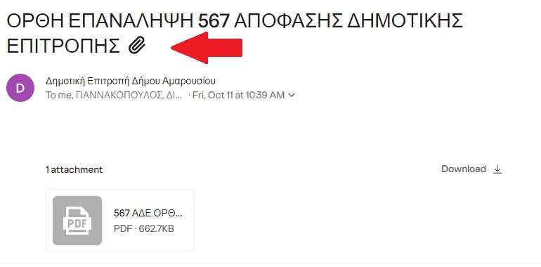 Μετά από σχετική επιστολή-αίτημα στις 9/10/24 (Διαβάστε με «κλικ» ΕΔΩ) των δημοτικών συμβούλων της μη κομματικής, ανεξάρτητης, ενωτικής, δημοκρατικής, δημοτικής παράταξης «Μαρούσι Αδέσμευτη Φωνή«, προς τον αρμόδιο αντιδήμαρχο και Πρόεδρο της Δημοτικής Επιτροπής, κ. Σπ. Σταθούλη, εκδόθηκε νέα, ορθή επανάληψη, της αρχικής απόφασης, που περιλαμβανόταν η αποδοχή του αιτήματος των κατοίκων, δηλαδή αναγραφόταν ξεκάθαρα ότι δεν θα γίνει αναψυκτήριο.